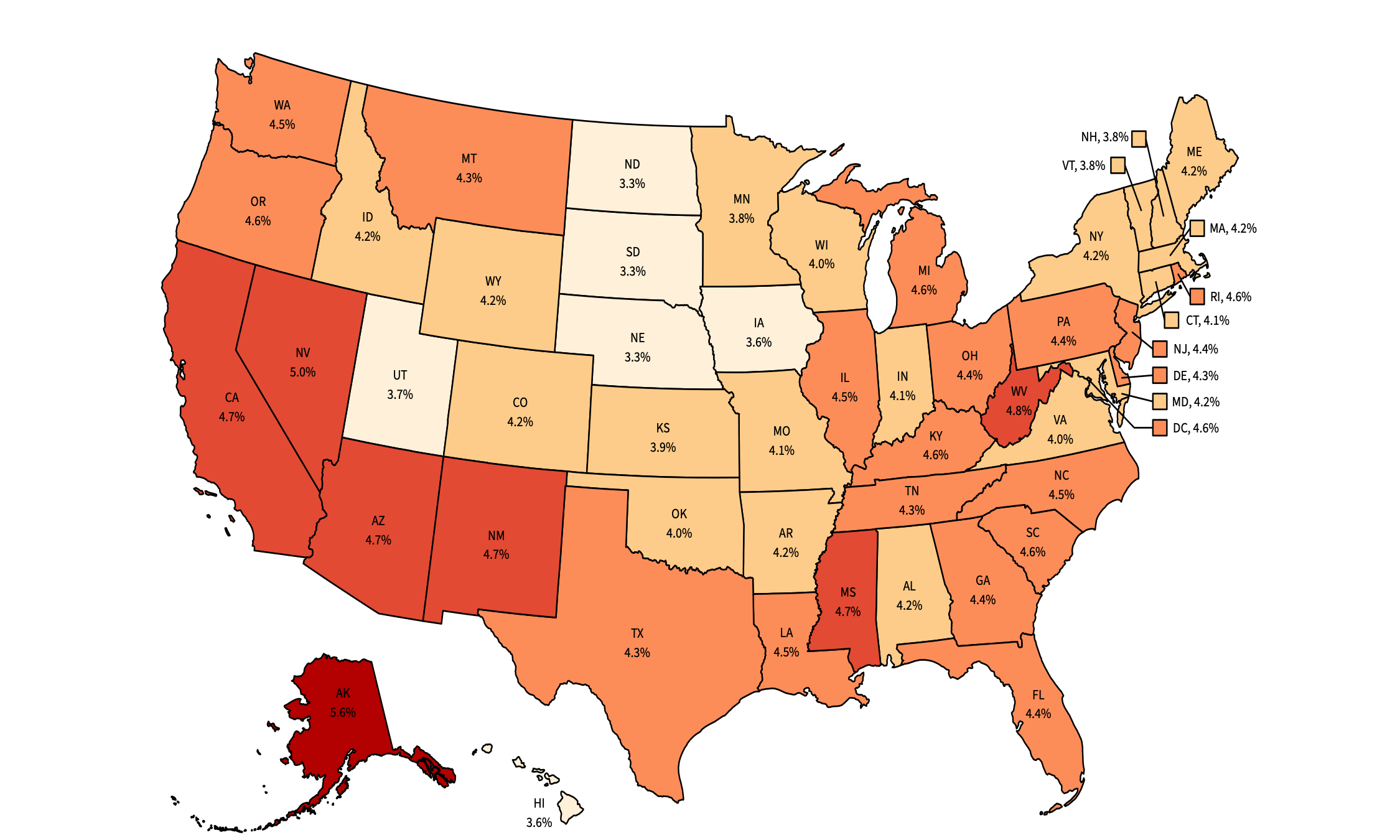 Figure 1: Average u* by State, 2001–2024